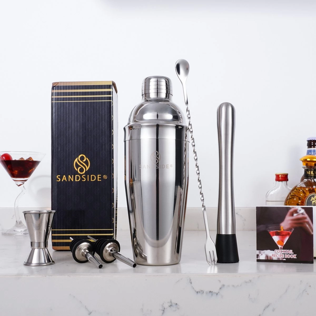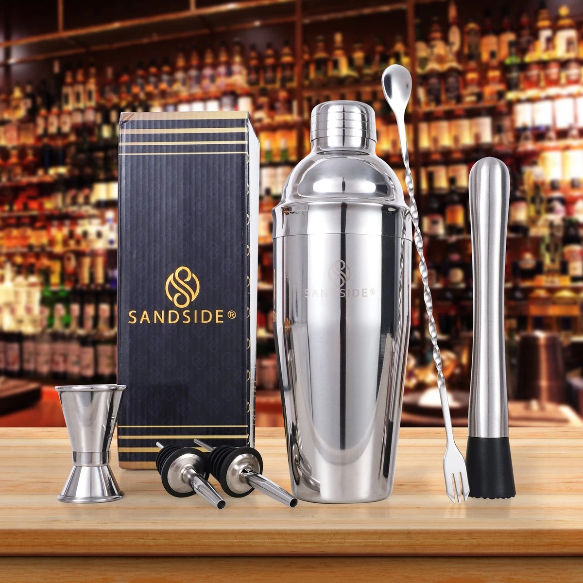 Cet ensemble à cocktail est livré avec un shaker à cocktail pratique de 750 ml dans lequel vous pouvez préparer n’importe quel cocktail en un rien de temps ! Le gobelet doseur de 15 ml et 30 ml du kit cocktail garantit que vous pouvez toujours traiter les bonnes quantités dans les cocktails, afin qu’ils soient parfaits à chaque fois ! Envie de faire un Mojito savoureux ? Ensuite, le pilon à cocktail est pratique pour écraser un peu le citron vert.