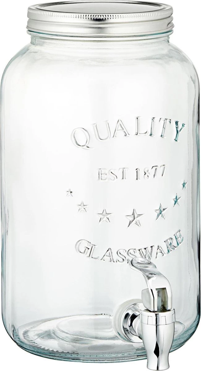 Set de 3x distributeurs de boissons / robinet de limonade 3,5 litres. Dimensions : 16x16x26cm. Matière: verre, métal. Le distributeur est facile à ouvrir et à fermer avec le grand bouchon à vis argenté sur le dessus. Remplir le distributeur d’une boisson alcoolisée ou non alcoolisée wens. Vous pouvez remplir un verre ou une bouteille en tournant le robinet (non inclus).