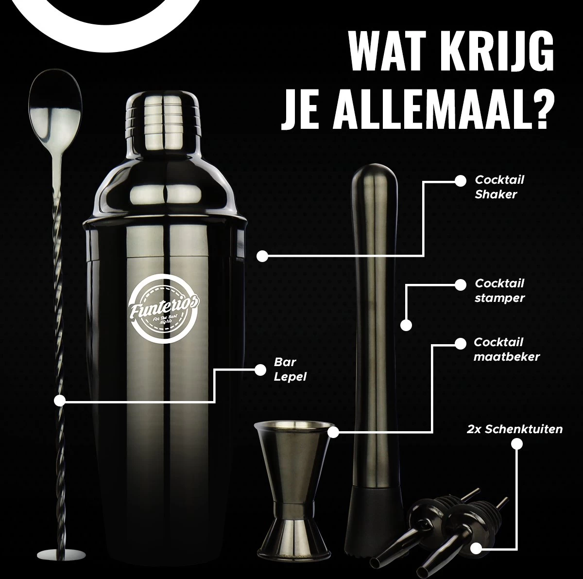 Désormais, vous pouvez préparer les cocktails parfaits pour vos amis et votre famille, ou dans votre bar avec le shaker à cocktail de Funterios. Cet ensemble de 6 pièces comprenant une tasse à mesurer est idéal pour un usage domestique et professionnel.