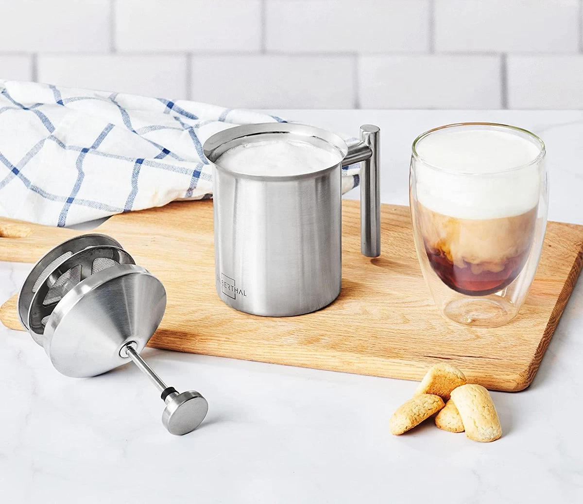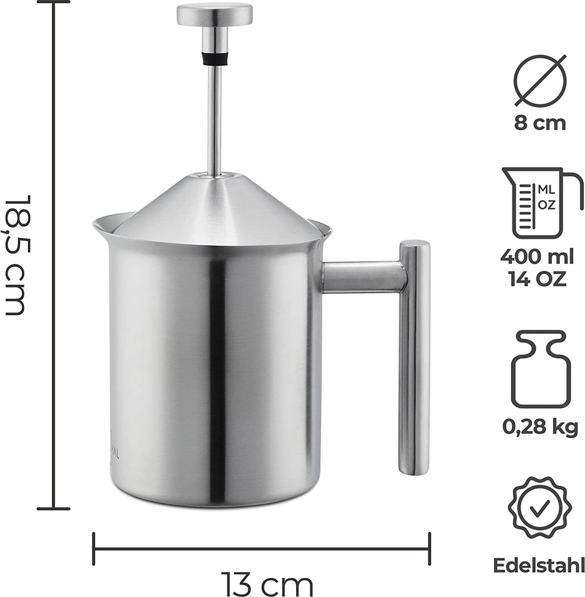 ✅ PRÉPARATION RAPIDE ET SILENCIEUSE À LA MAIN – Le mécanisme de pression simple et innovant et un double tamis facilitent la mousse à la main en moins de 15 secondes. Les parois intérieures sont polies pour une cuisson silencieuse.
