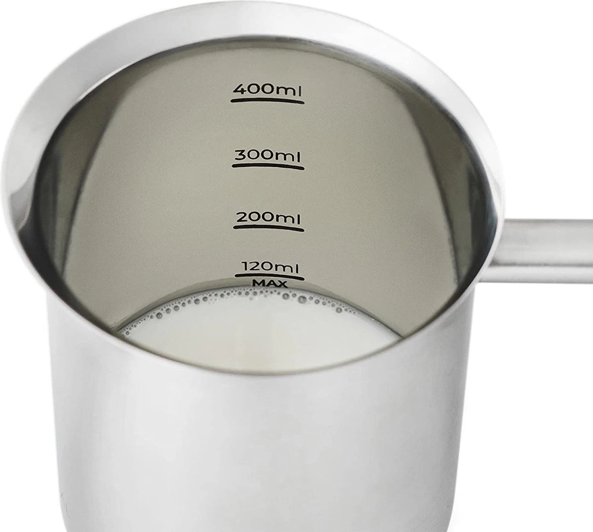 ✅ Groot volume de 400 ml avec échelle de mesure – pour plusieurs tasses ou une grande tasse de lait mousseux. Mesure facile avec échelle intégrée. Ainsi, jusqu’à 120 ml de lait liquide peuvent être moussés pour jusqu’à 2-3 cappuccinos.