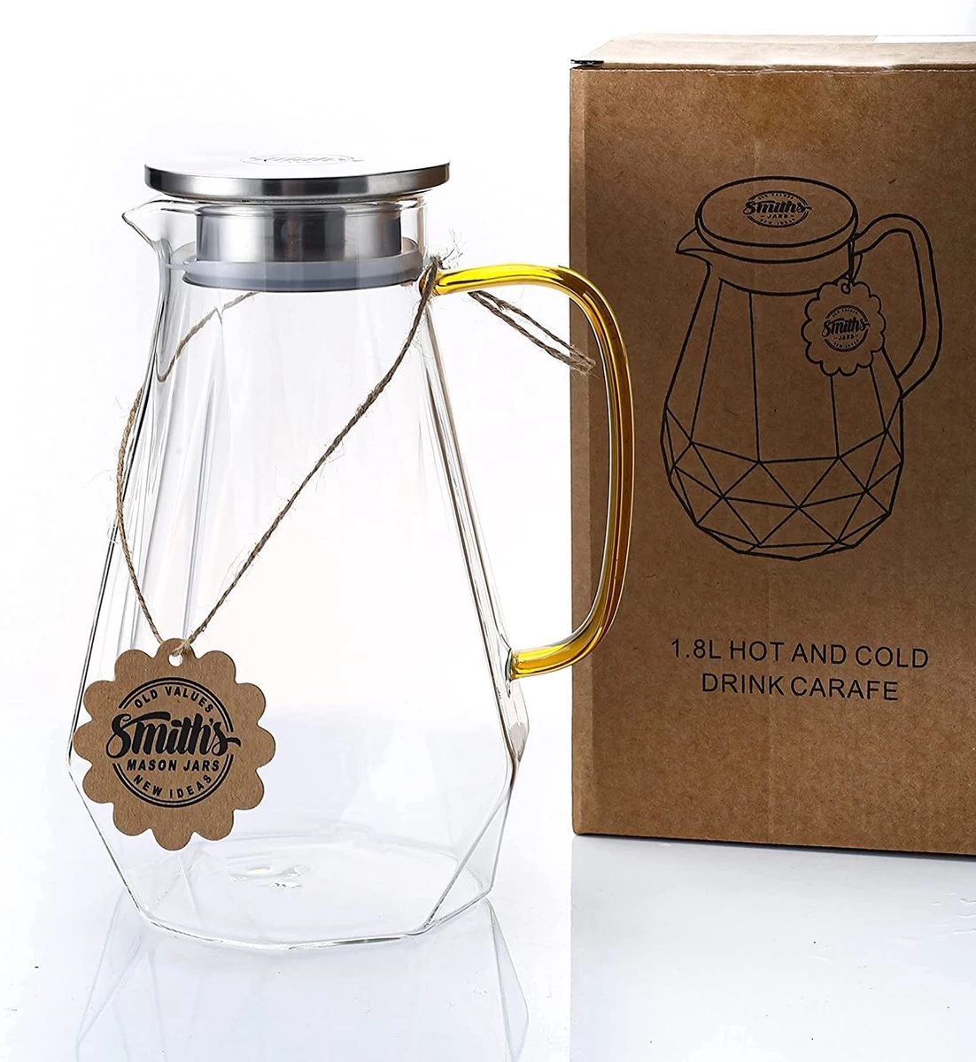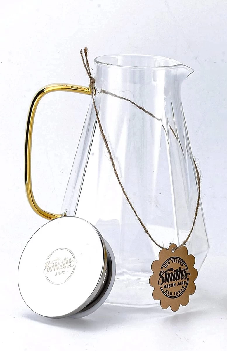Smith’s Mason Jars Cuisinière Et Pichet En Verres Idéal Pour Réfrigérateur, Pichets à Eau, Couvercle à 2 Voies, Pichet En Verre Borosilicaté Léger Et Durable Avec Poignée, Design Classique | Bocaux Mason De Smith