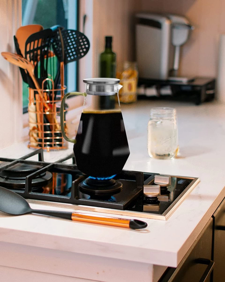 - CONÇU POUR RÉSISTER À DES TEMPÉRATURES DE 300 ° F à 350 ° F, profitez de votre boisson préférée chaude ou froide ! Pichet de 1,8 litre de thé chaud ou même de café pendant la saison froide – savourez votre café glacé ou vos jus de fruits frais, et rangez-les dans le pichet directement au koelkast sans vous soucier de la casse.