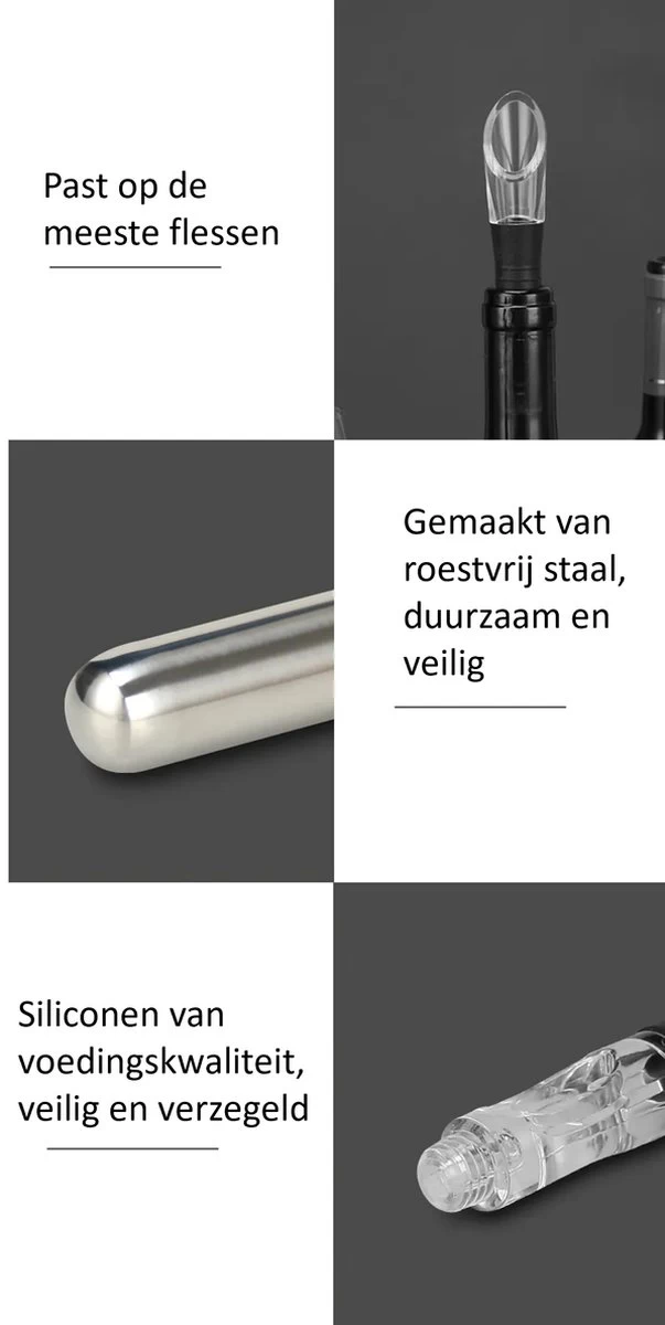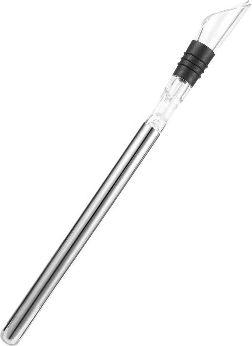 La fonte des glaces dilue le vin et en modifie le goût. Avec ce refroidisseur à vin, vous ne serez plus dérangé par cela. Grâce à la tige de refroidissement en inox, le goût reste optimal. Le double aérateur intégré ajoute de l’oxygène supplémentaire pour améliorer au maximum le goût du vin. Le refroidisseur à vin s’adapte à toutes les bouteilles de vin de taille standard et est facile à ranger. Plus de problèmes avec les bouteilles de vin humides ou les tracas avec un seau à glace.