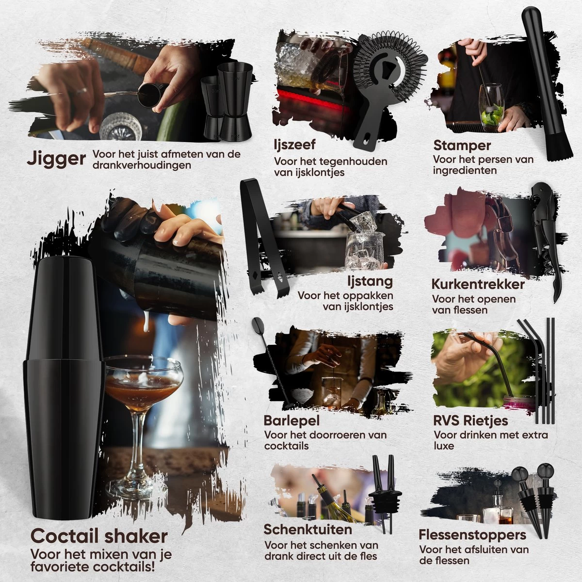 Que vous soyez un expert confirmé ou que vous commenciez à faire des cocktails : cet ensemble peut être utilisé par tout le monde. Tous les outils dont vous avez besoin pour préparer les cocktails les plus savoureux se trouvent dans cet ensemble de shaker de Strex. Ce ne sont pas des accessoires compliqués, être barman ou barman est vraiment plus facile que vous ne le pensez ! Surprenez vos amis et votre famille avec les boissons glacées les plus savoureuses, comme une Margarita, Cosmopolitan, Mojito, Long Island Iced Tea ou une Tequila Sunrise. Le set de shaker convient bien sûr également à la préparation de cocktails sans alcool.