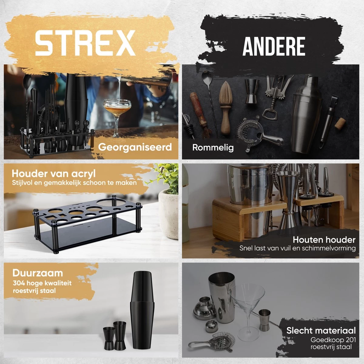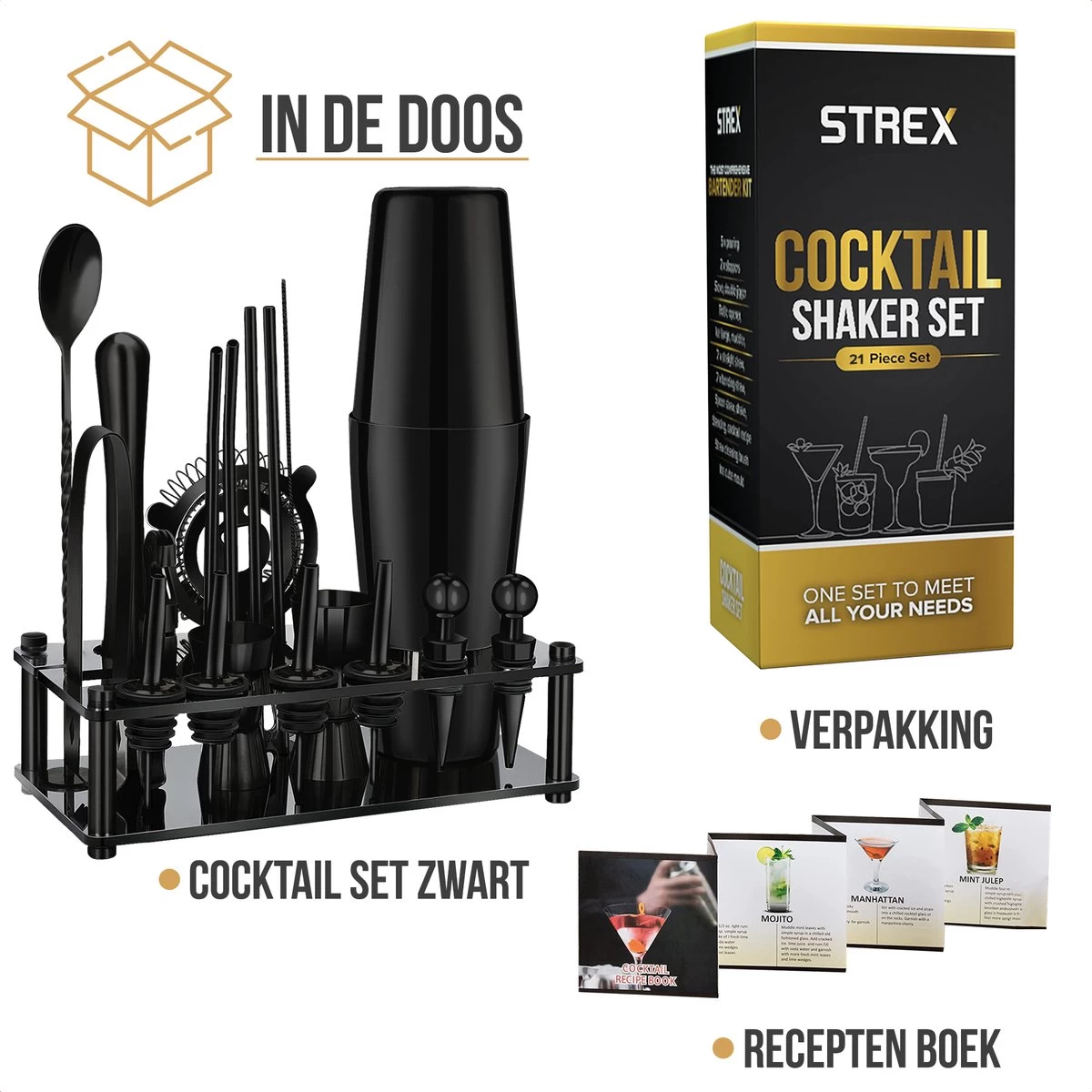 Profitez des cocktails les plus savoureux? A partir de maintenant, vous n’avez plus besoin de quitter la maison. Obtenez le professionnel 21 piècesensemble de cocktails de Strex à la maison et préparez les cocktails les plus délicieux en un rien de temps ! Idéal pour une agréable soirée en couple, entre amis ou lors de toute autre occasion. Le shaker à cocktail est livré avectous les accessoires vous devez créer les cocktails les plus beaux et les plus savoureux.