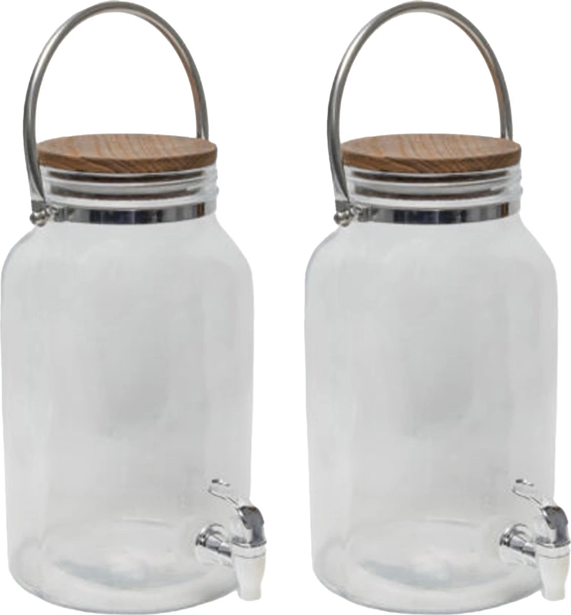 2x distributeurs de limonade/boisson Svenska living avec poignée. Le distributeur de limonade est en verre et possède un robinet. Contenu : environ 6 litres. Dimensions : 18 x 21 x 31 cm.